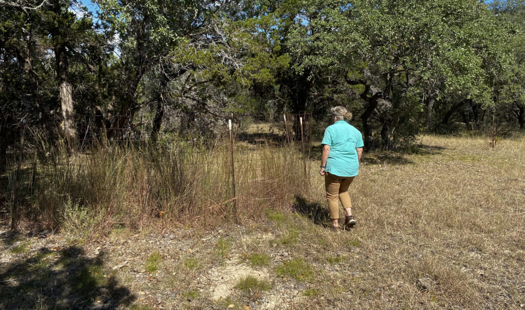 When touring a north Hays County ranch, we discovered a few plots on a dry hill that had been fenced off years ago. The intent had been to protect newly planted native trees, but the unintended result has been a lush growth of mostly Little Bluestem grass. The lushness directly contrasts the unprotected weak, sparse grass cover outside the fence.
